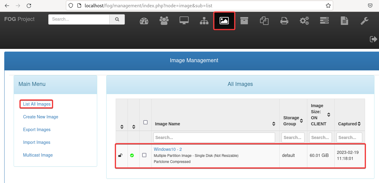 Cuando termine, verificamos que se ha creado la imágen en el panel de administración, y ahora tenemos las dos imágenes.