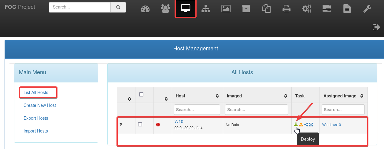 Luego, crearemos un nuevo host, indicando la dirección MAC y la imágen que hemos creado antes.