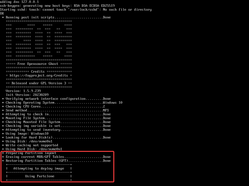 Arrancaremos el mismo equipo desde la red y esperaremos a que se termine de clonar.