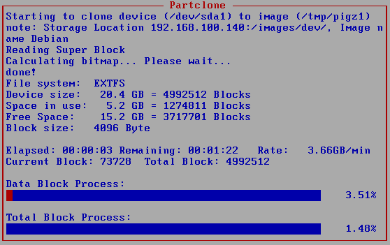 Ahora, dejaremos esta pantalla hasta que termine la clonación.