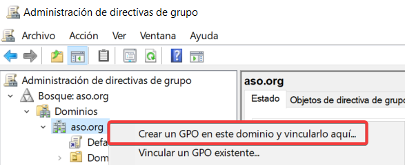 Ahora crearemos una nueva GPO y la vinculamos al dominio directamente.