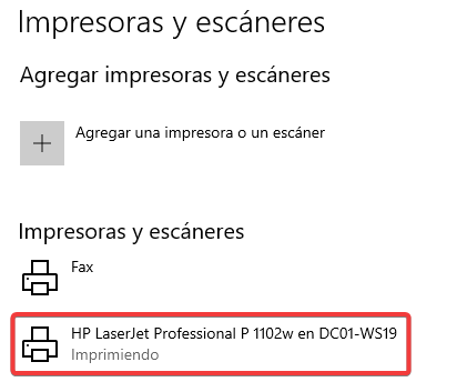 Seleccionamos nuestra impresora. (La veremos aquí si la hemos compartido antes)