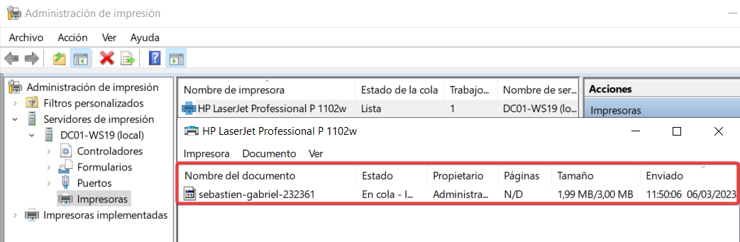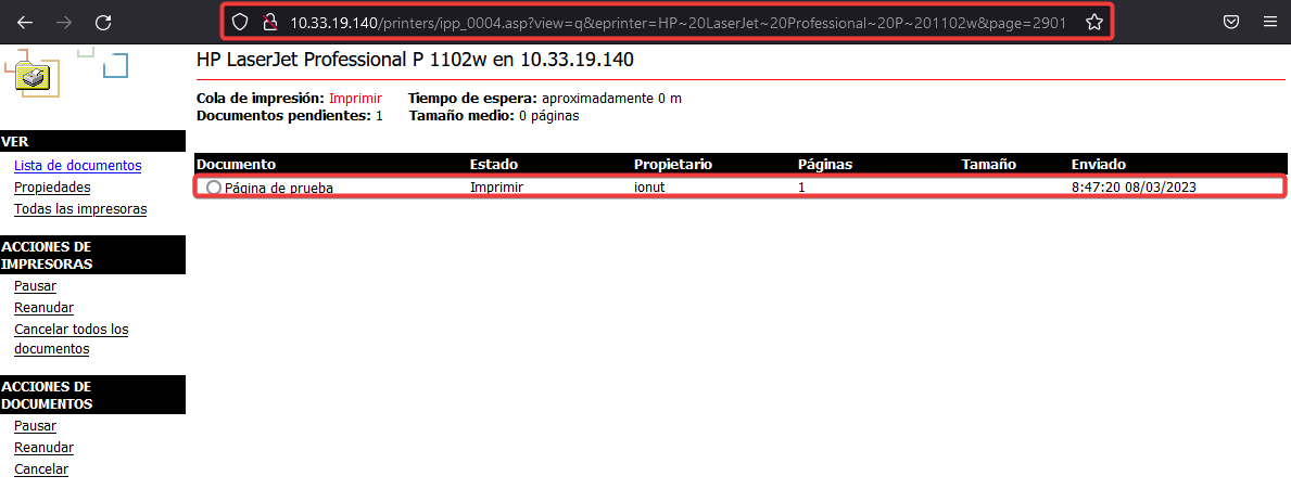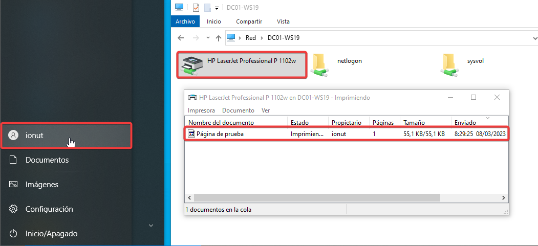 Ahora, verificamos que el usuario ionut puede seguir imprimiendo.