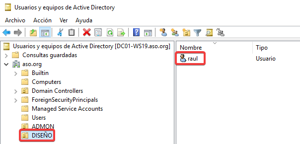 Crearemos dos Unidades Organizativas llamadas ADMON y DISEÑO.