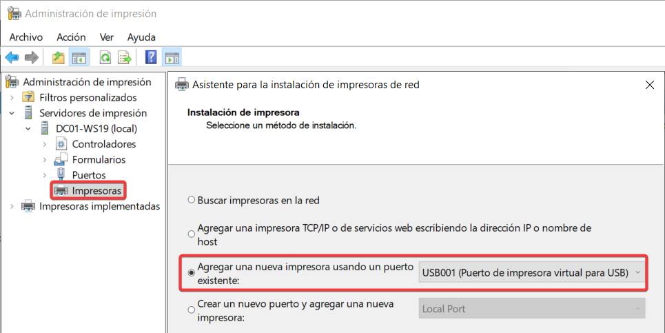 Nos aseguramos que el servidor de impresión está seleccionado.